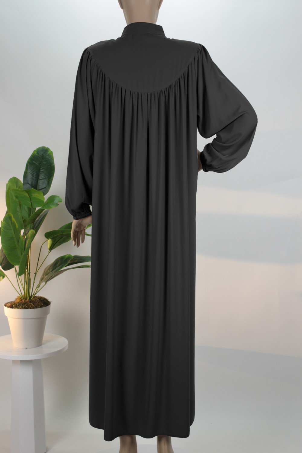 Geniş ve ultra salaş kesimi sayesinde hareket özgürlüğünüzü en üst seviyeye çıkaran bu model, boyun kısmındaki zarif detay ve gizli kapama sistemiyle sadeliği kaliteyle buluşturuyor. Hem günlük hayatın temposunda hem de özel davetlerde zahmetsiz bir şıklık arayanlar için tasarlanan bu ferace, dökümlü yapısıyla her adımda asil bir duruş sergiler.