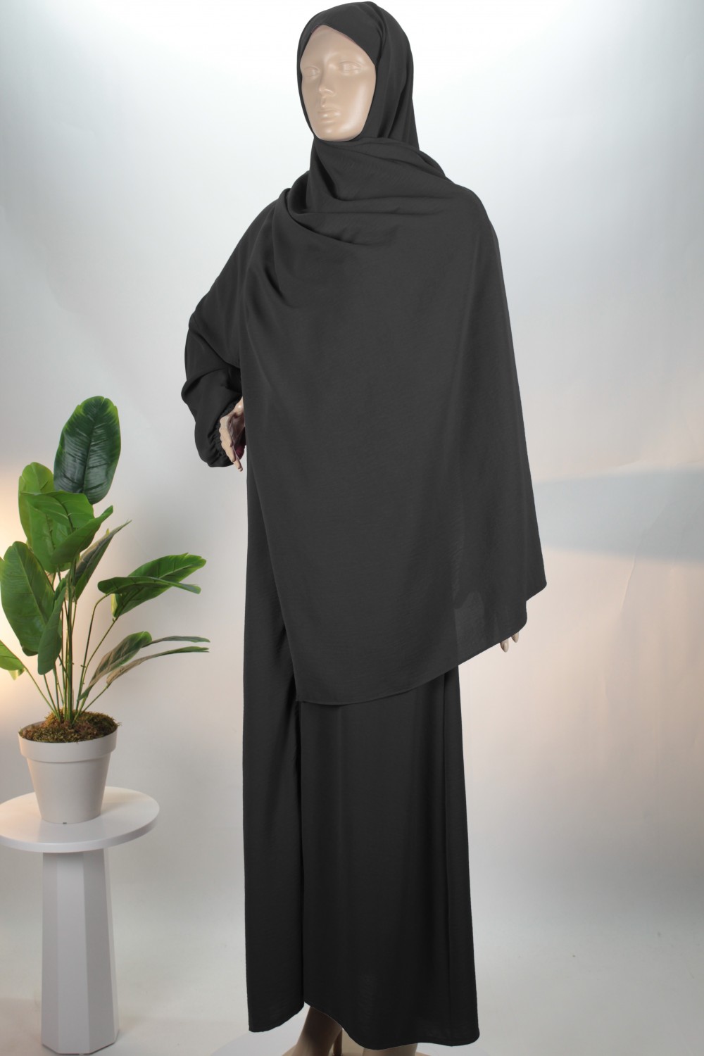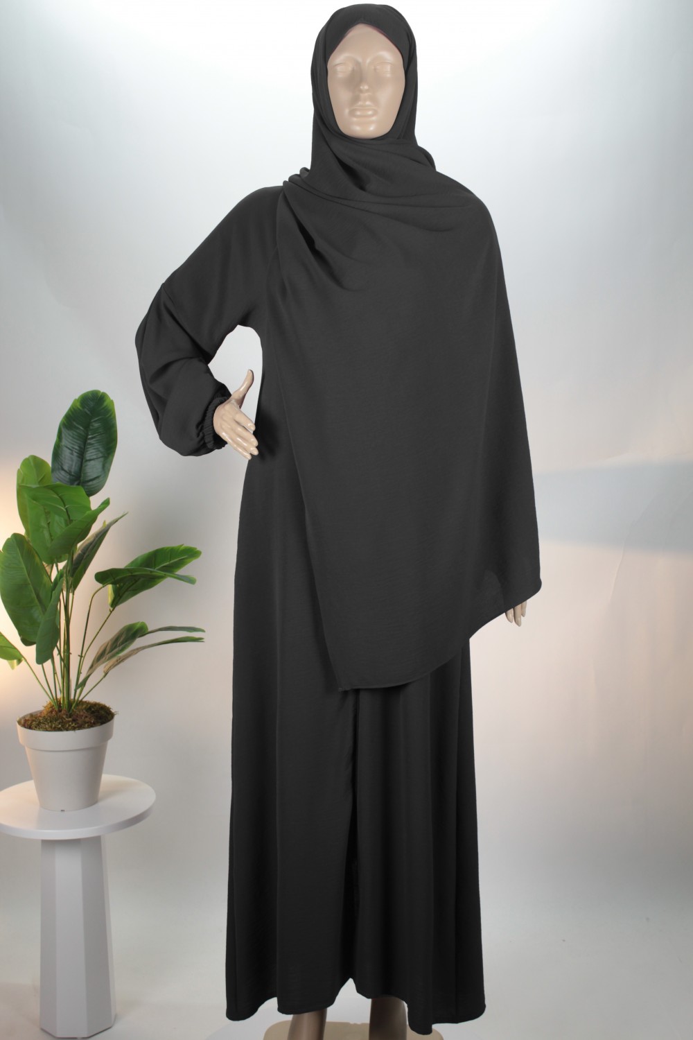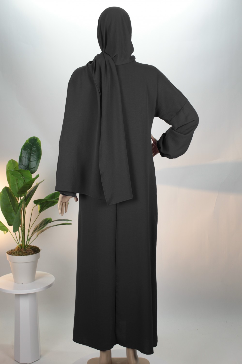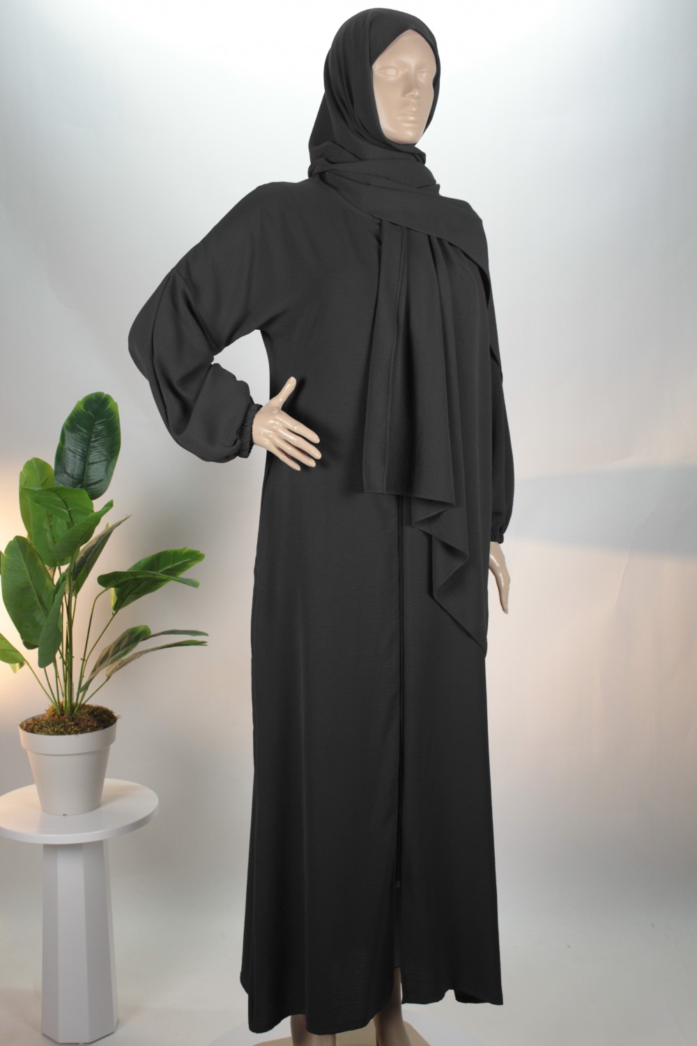 Kırışmaya dayanıklı dokusu sayesinde yoğun hareket halindeyken bile özenli görünümünüzü korumanıza yardımcı olan bu model, bilekleri kavrayan lastikli manşetleri ve dökümlü kesimiyle hareket özgürlüğünüzü kısıtlamaz. Sadeliğin asaletini taşıyan bu tasarım, manevi yolculuklarınızda ve en özel günlerinize eşlik edecek en konforlu ve şık tercihiniz olacak.