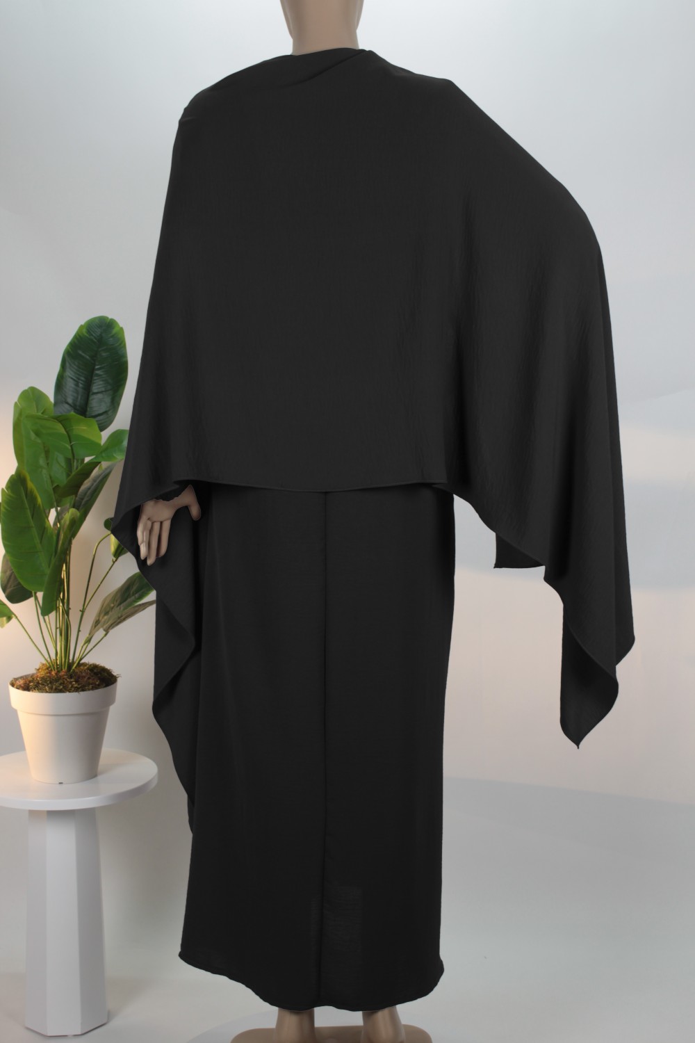 Siyah 3'ü1 Arada Pelerinli Ayrobin Ferace (Umre & Namaz & Hatim Elbisesi)