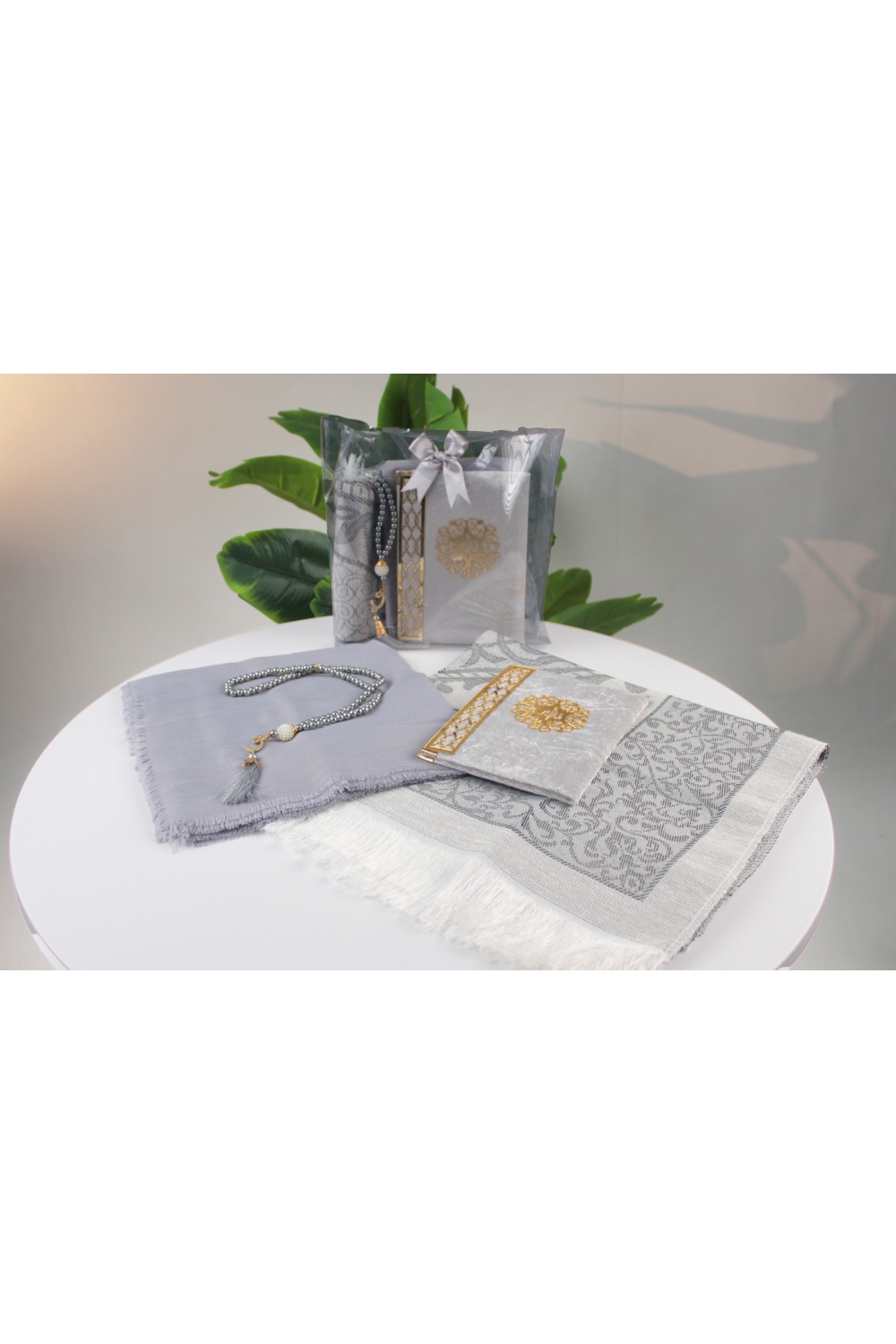 Kendine özel, kulplu şeffaf çantası sayesinde paketleme zahmetini ortadan kaldıran bu set, hem toplu hediye dağıtımları için pratik bir çözüm sunar hem de muhafazası kolaydır. Altın yaldız detayları ve birbiriyle uyumlu motifleriyle, sevdiklerinizin her ibadetinde sizi hatırlatacak kalıcı ve bereketli bir hediyeliktir.