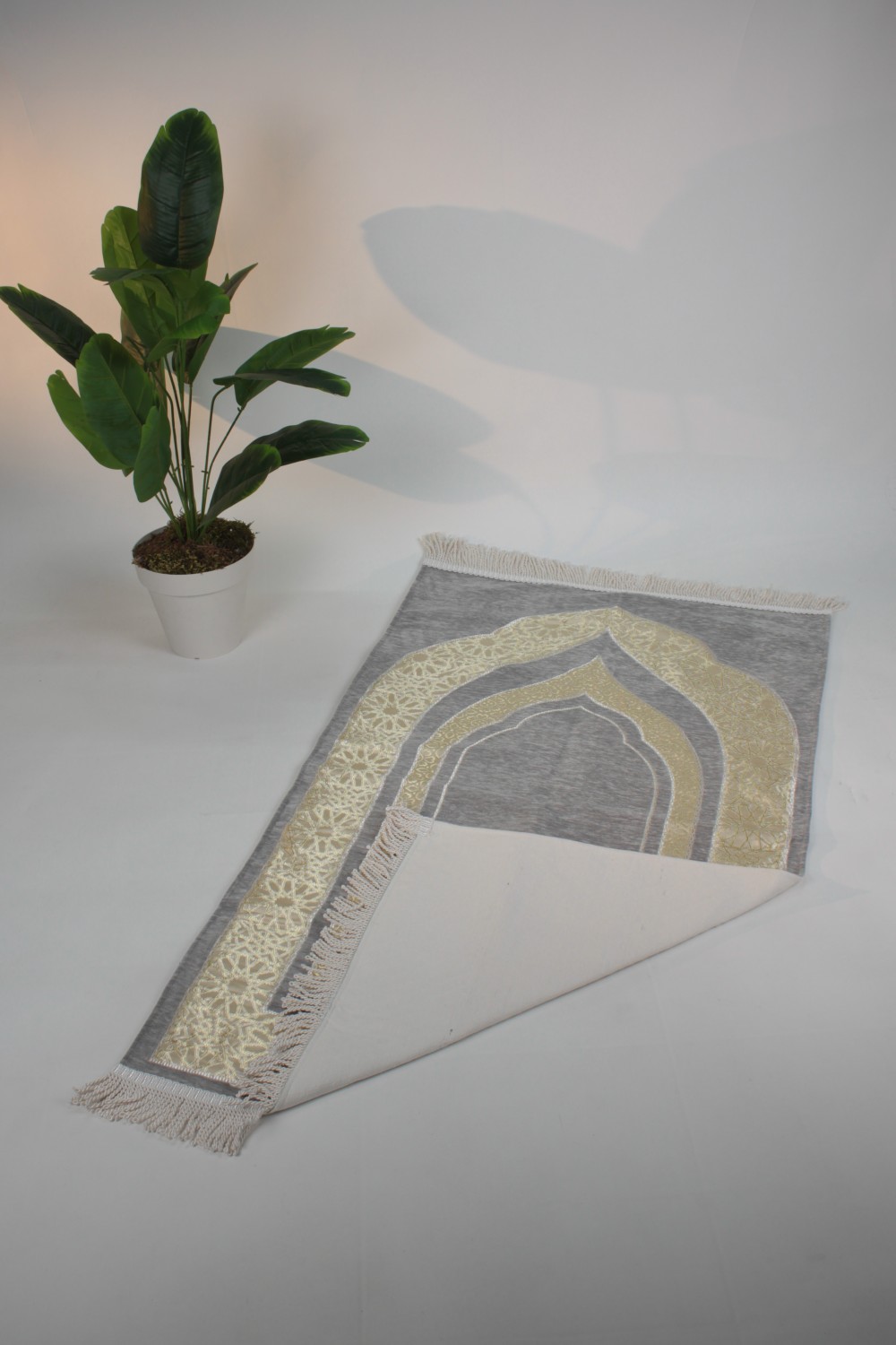 Gri Lüx Kabartmalı Saten Astarlı Seccade