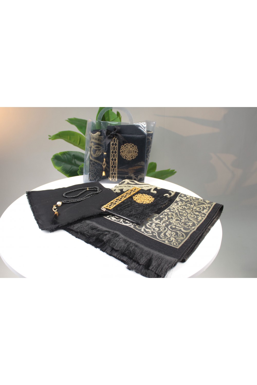 Kendine özel, kulplu şeffaf çantası sayesinde paketleme zahmetini ortadan kaldıran bu set, hem toplu hediye dağıtımları için pratik bir çözüm sunar hem de muhafazası kolaydır. Altın yaldız detayları ve birbiriyle uyumlu motifleriyle, sevdiklerinizin her ibadetinde sizi hatırlatacak kalıcı ve bereketli bir hediyeliktir.