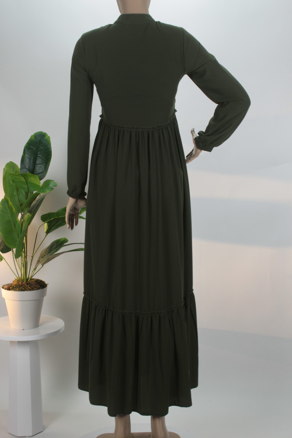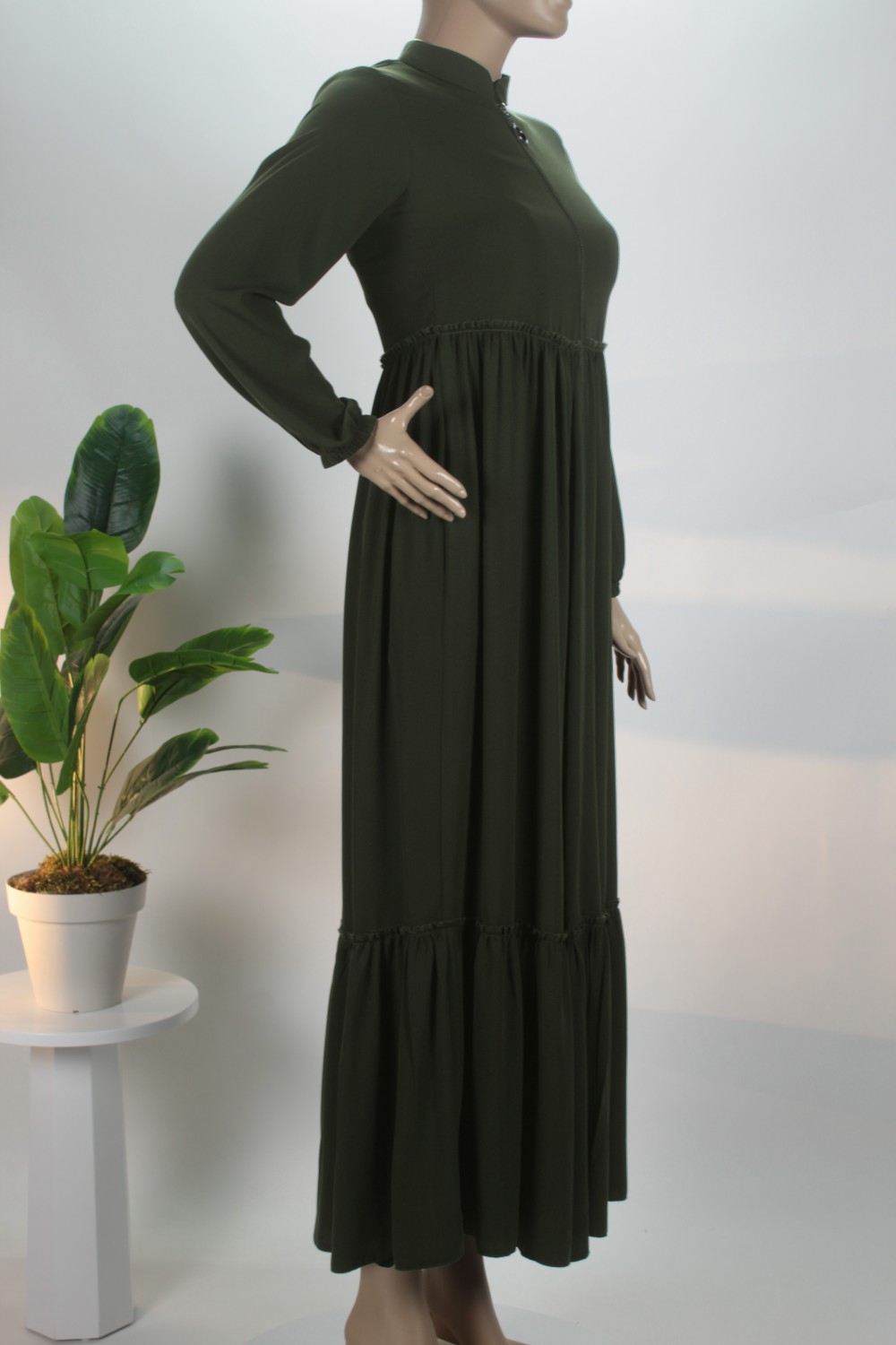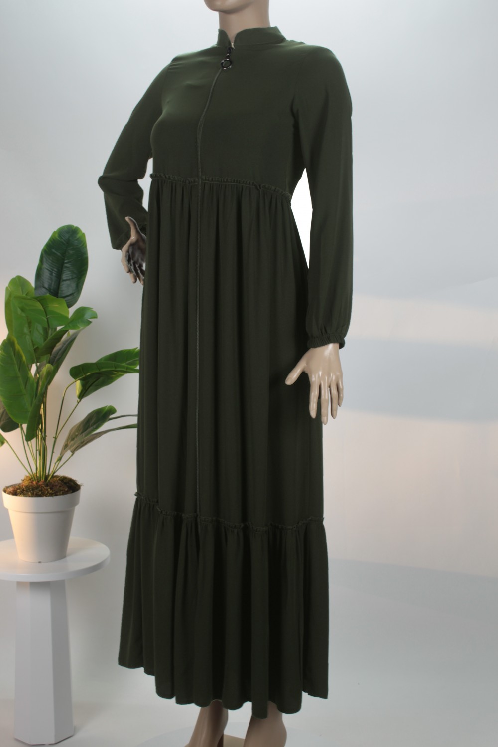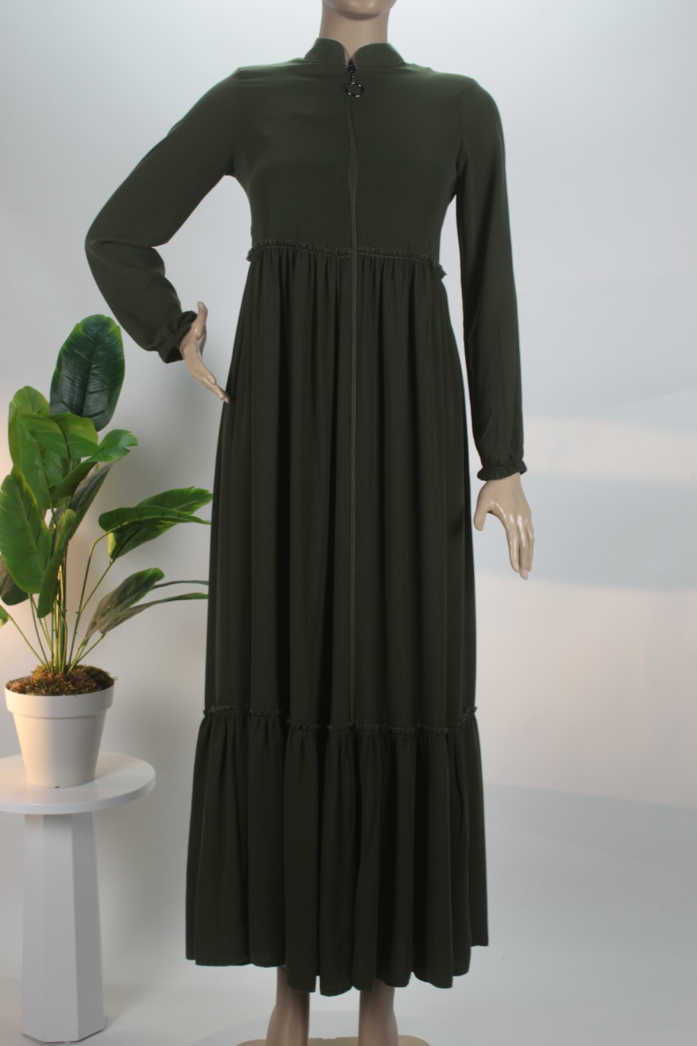 Haki Beli ve Eteği Fırfırlı Krep Ferace