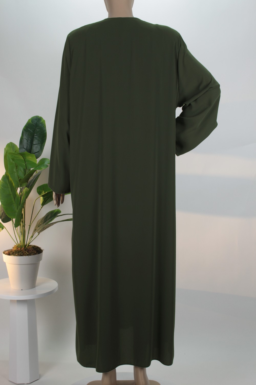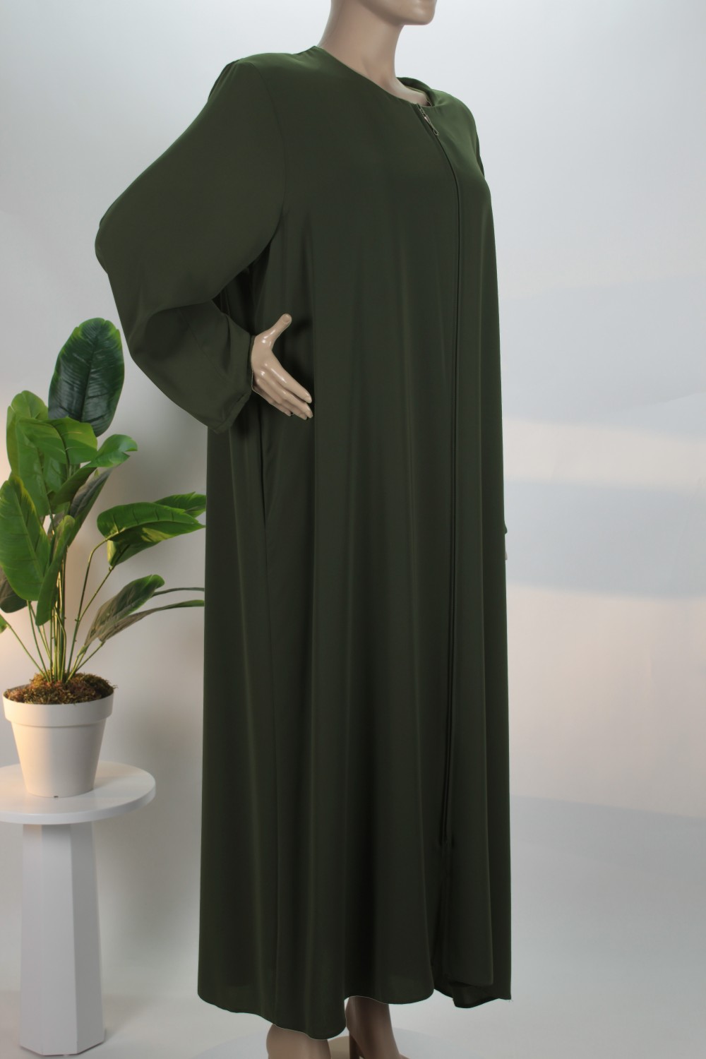 Sade ve modern tasarımıyla her yaşa hitap eden bu model, boydan boya uzanan gizli fermuarı sayesinde pratik bir kullanım sunarken; dökümlü kolları ve zarif duruşuyla zarafeti ön plana çıkarıyor. Hem günlük hayatın temposunda hem de özel ziyaretlerinizde muhafazakar çizgiden ödün vermeden, en konforlu haliyle şıklığı yakalamak isteyen kadınlar için özel olarak tasarlandı.