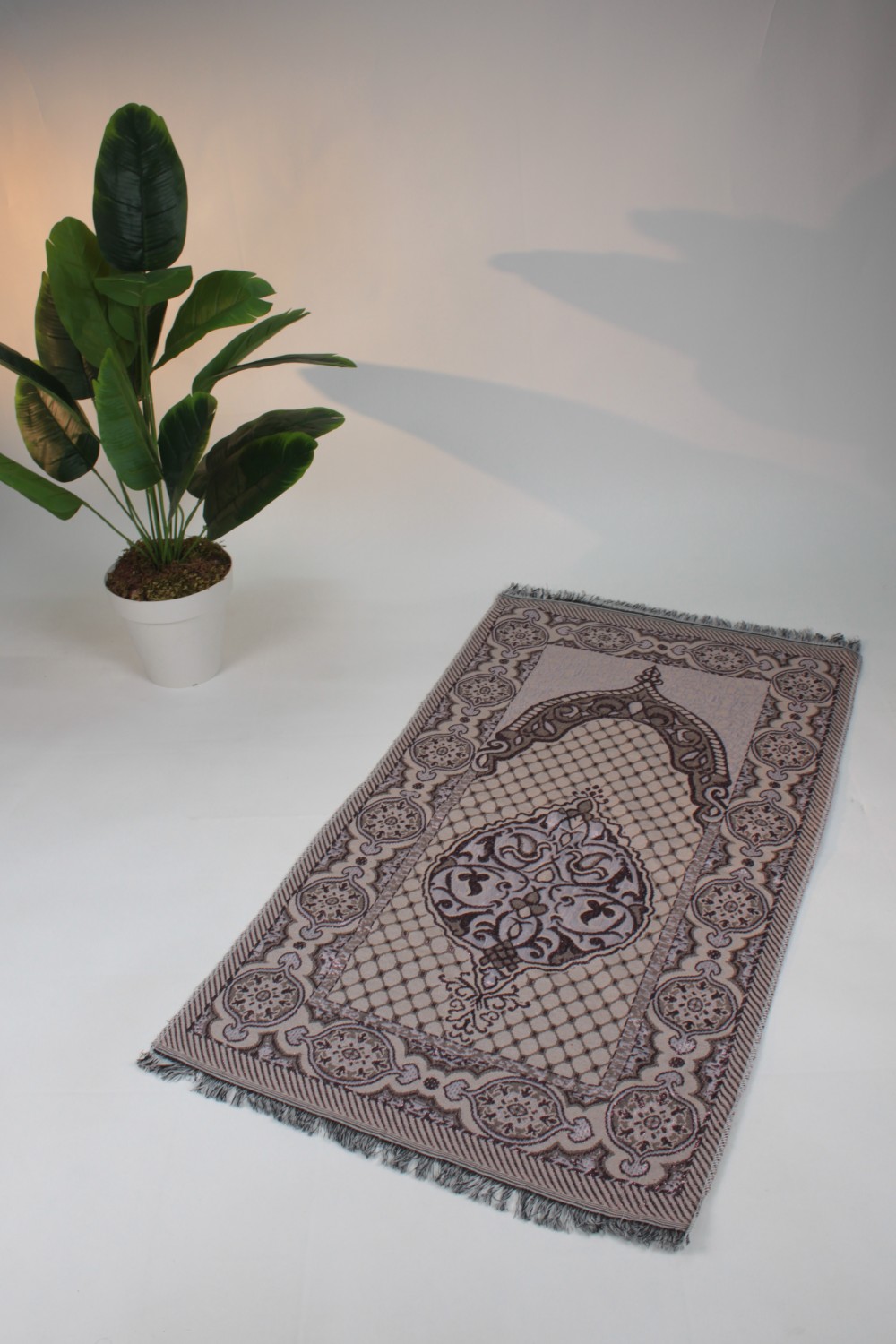 Dayanıklı Saçak Detayları: Seccadenin alt ve üst kısımlarında yer alan şık saçaklar, sökülmelere karşı dayanıklı ipliklerden üretilmiştir.