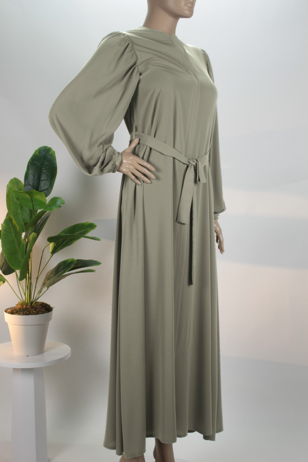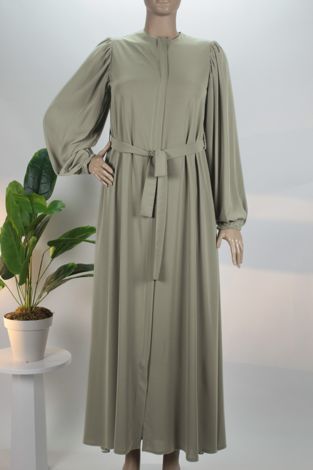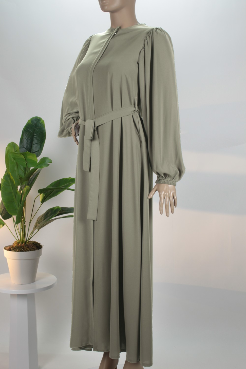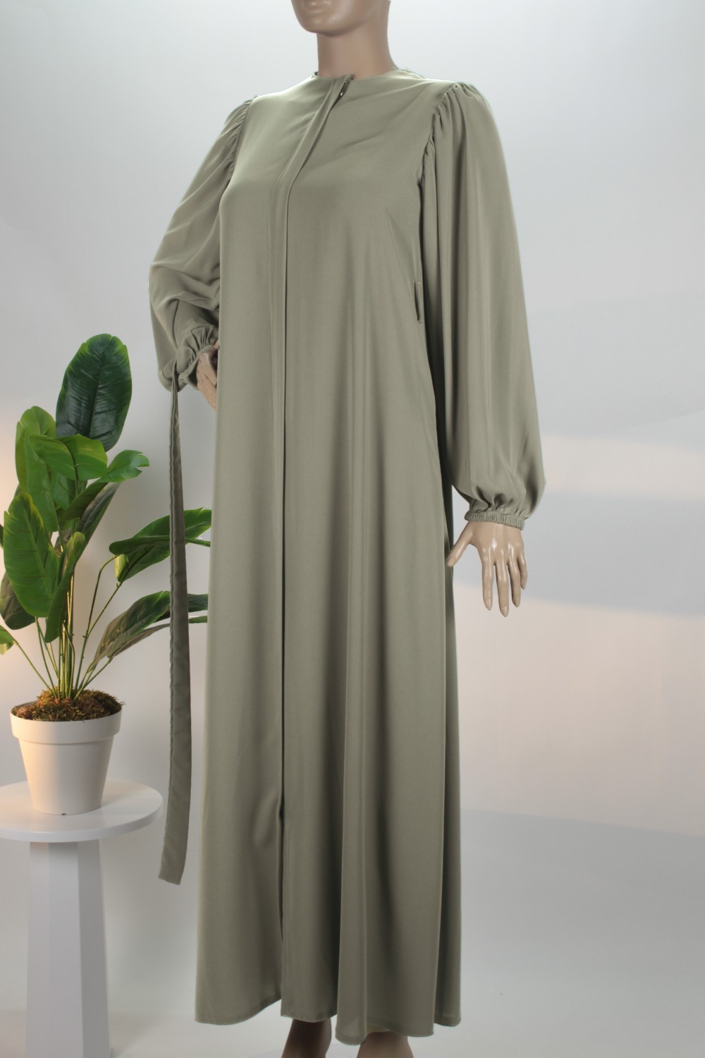 Küf Yeşili Balon Kol Gizli Fermuarlı Pat Kemerli Medine İpeği Ferace