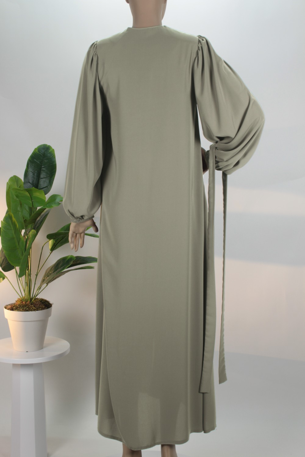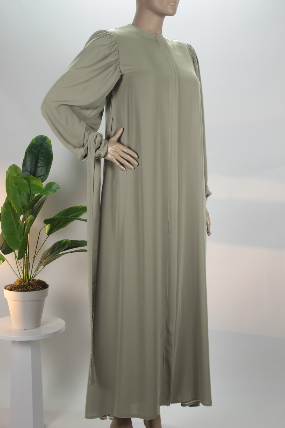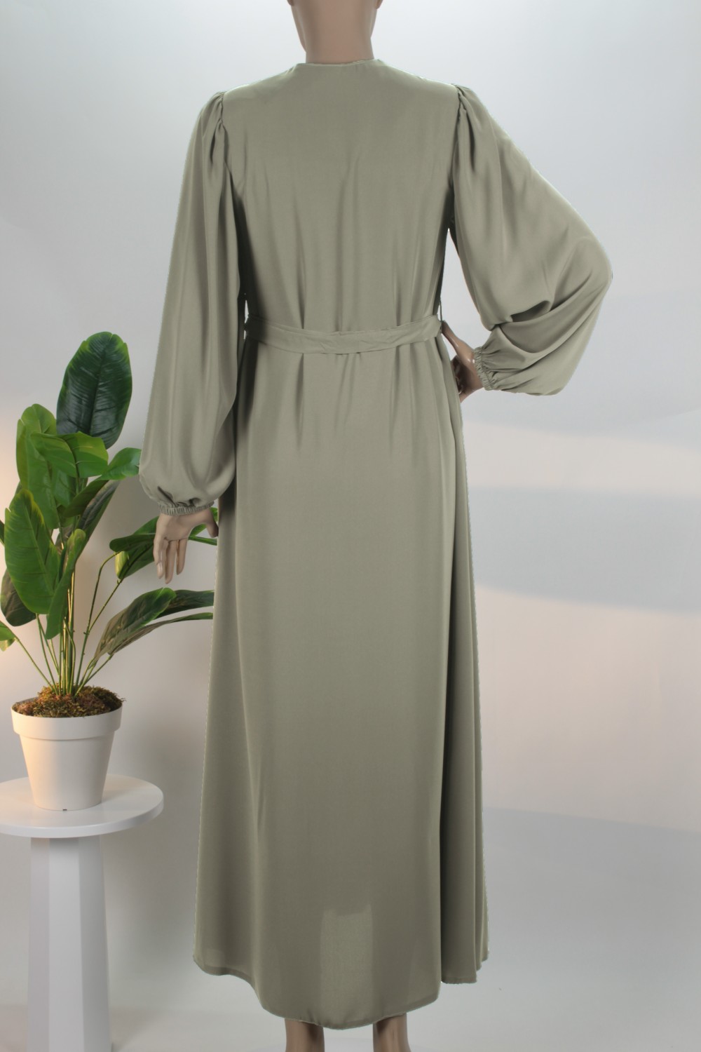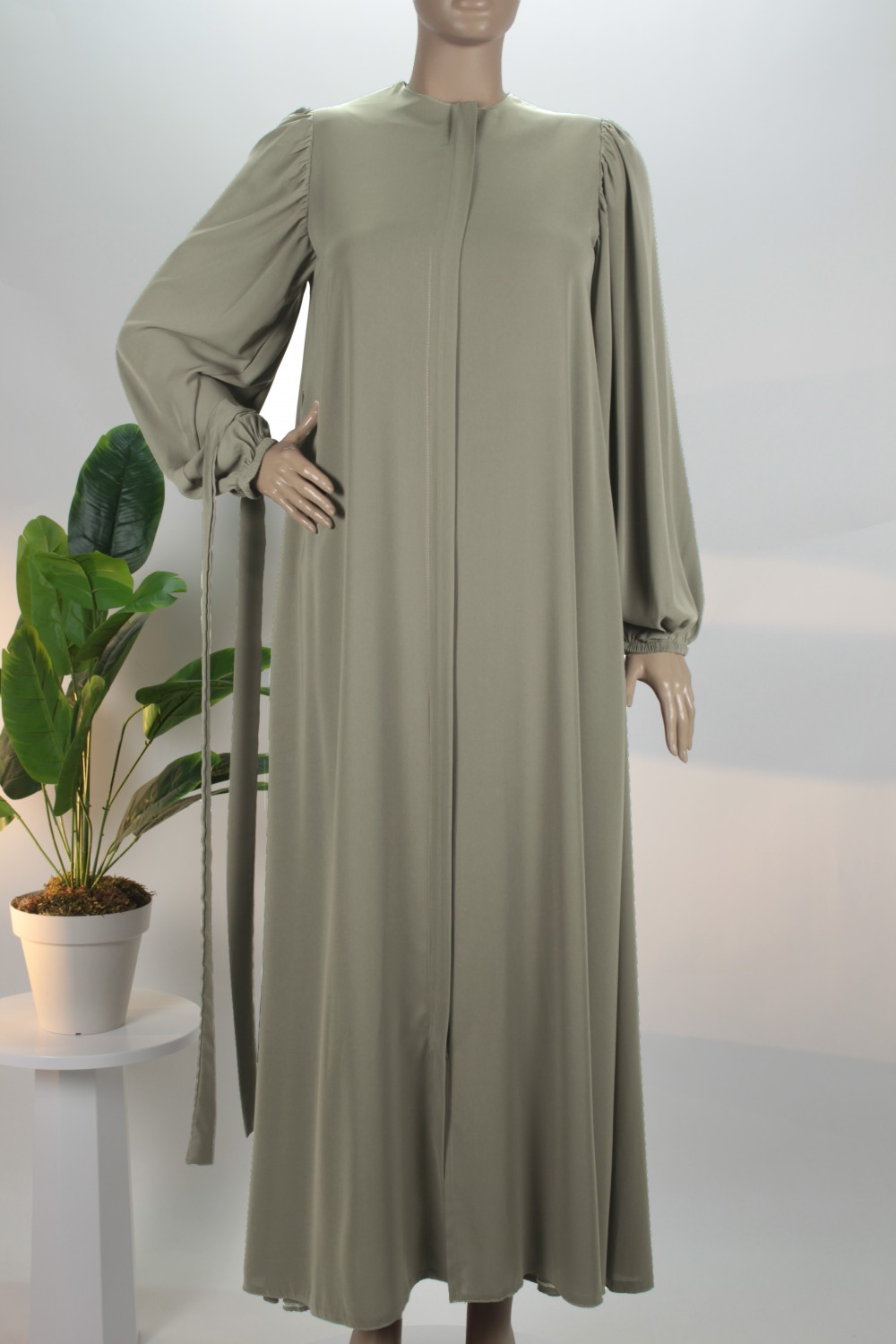 Küf Yeşili Balon Kol Gizli Fermuarlı Pat Kemerli Medine İpeği Ferace