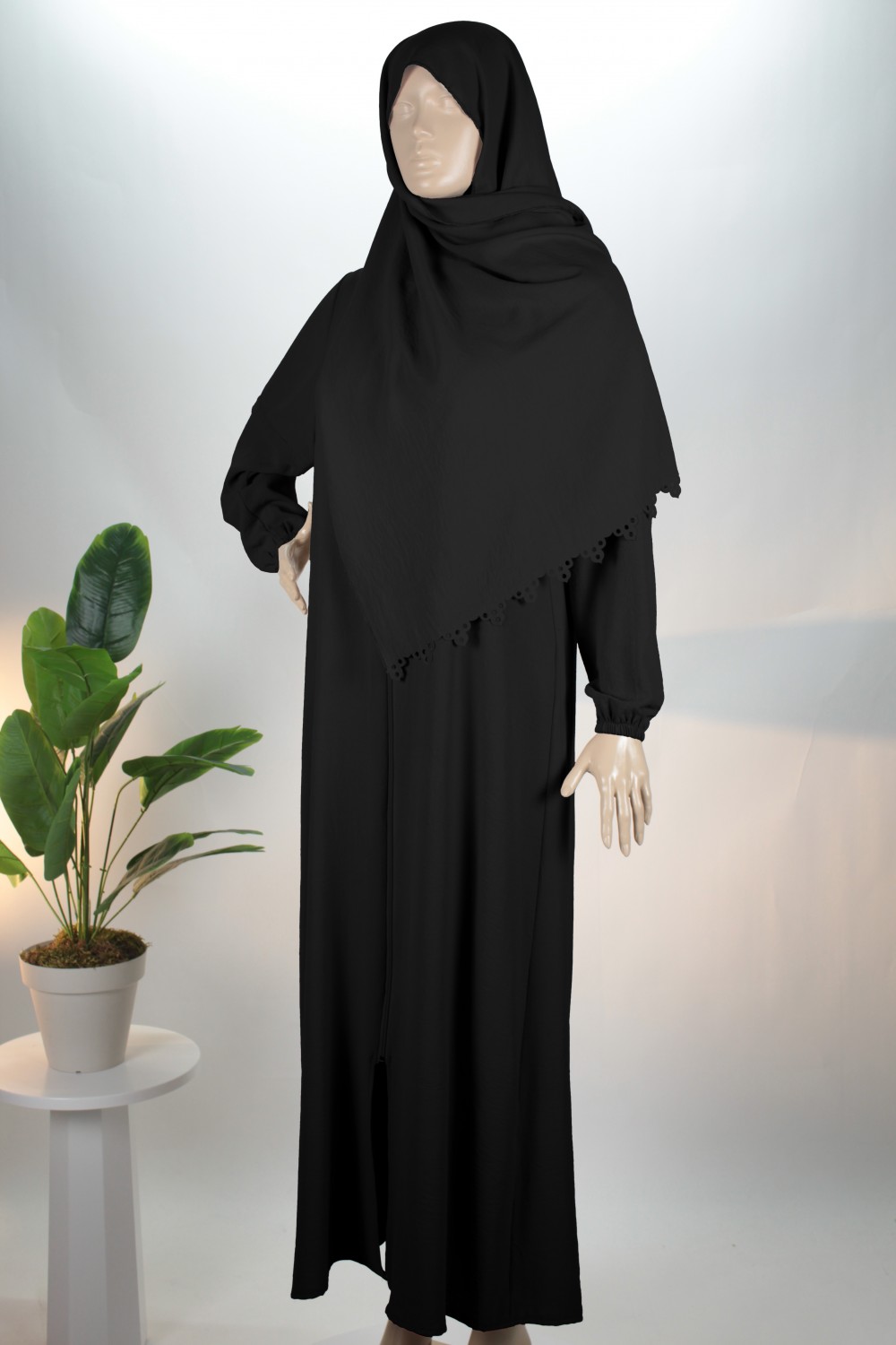 Siyah 3'ü 1 Arada Lazer Kesim Şallı Ayrobin Ferace (Umre & Namaz & Hatim Elbisesi)