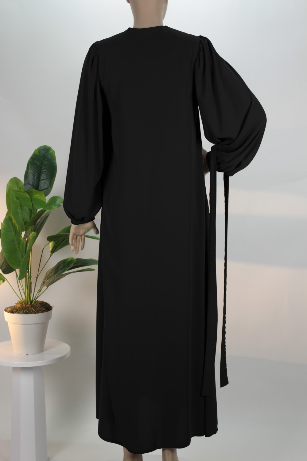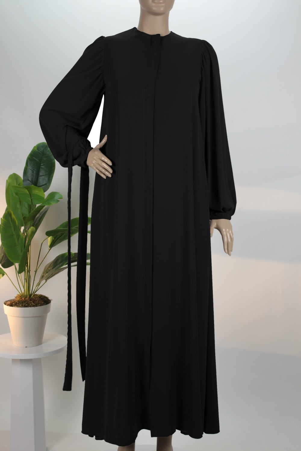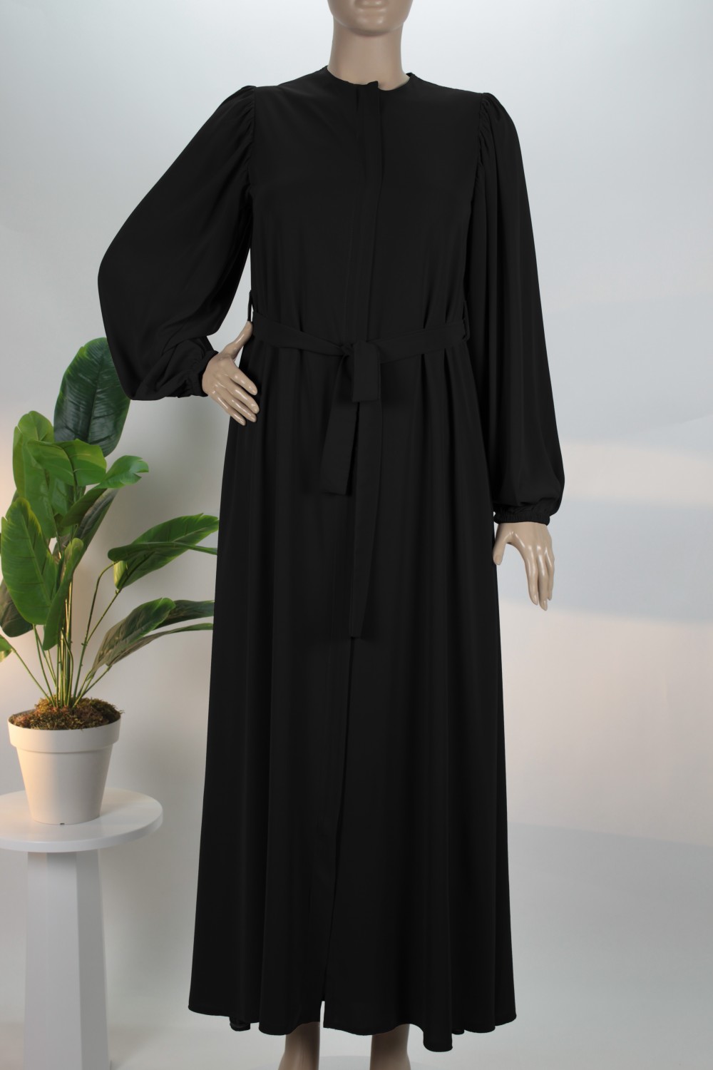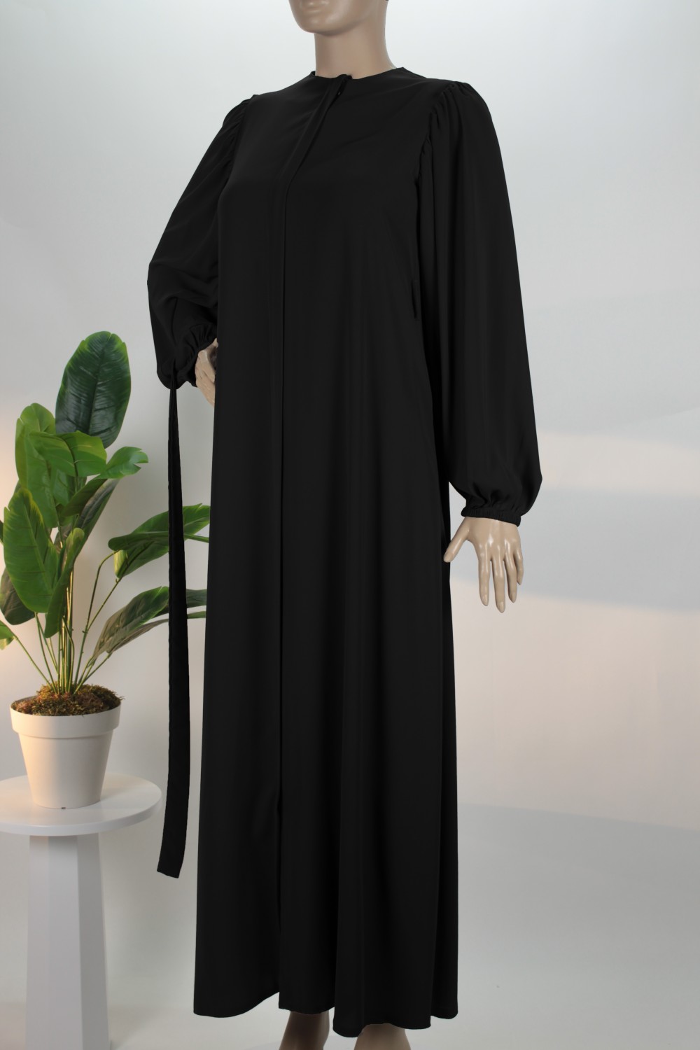 Siyah Balon Kol Gizli Fermuarlı Pat Kemerli Medine İpeği Ferace