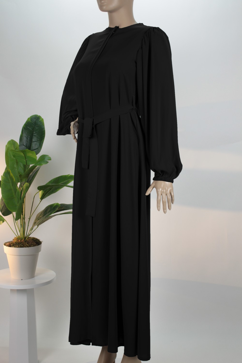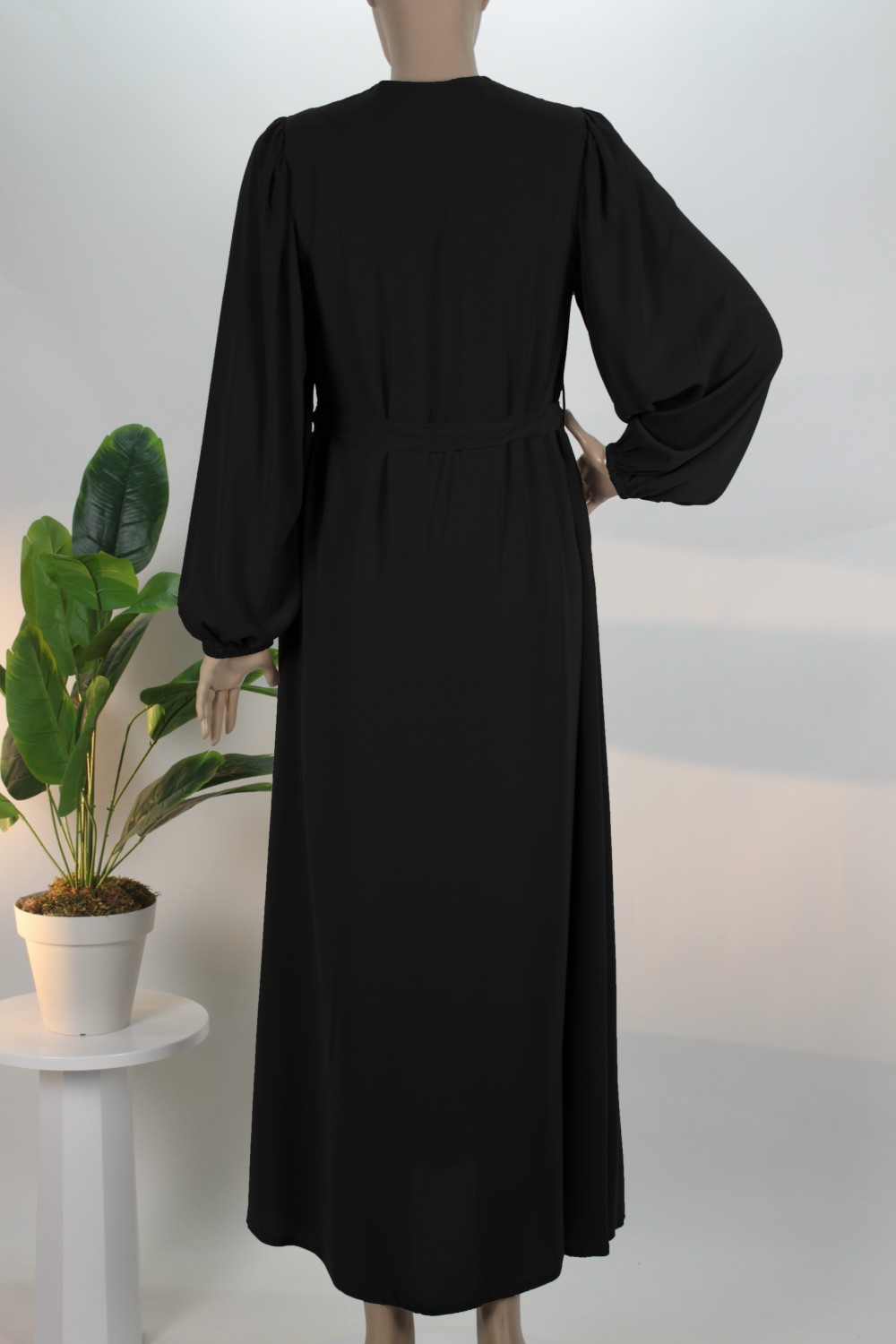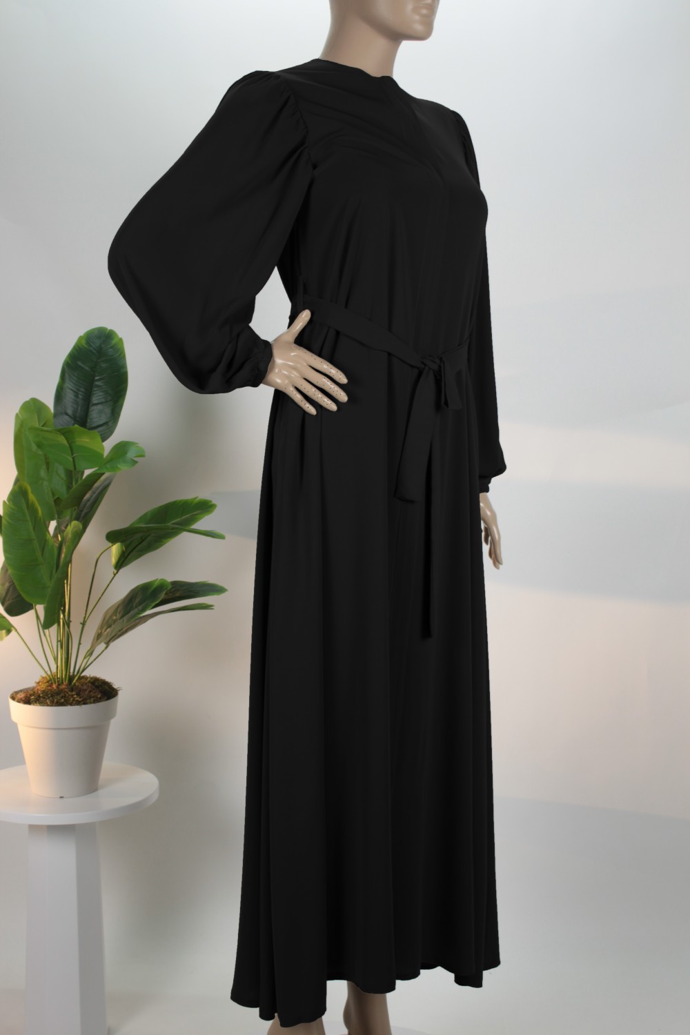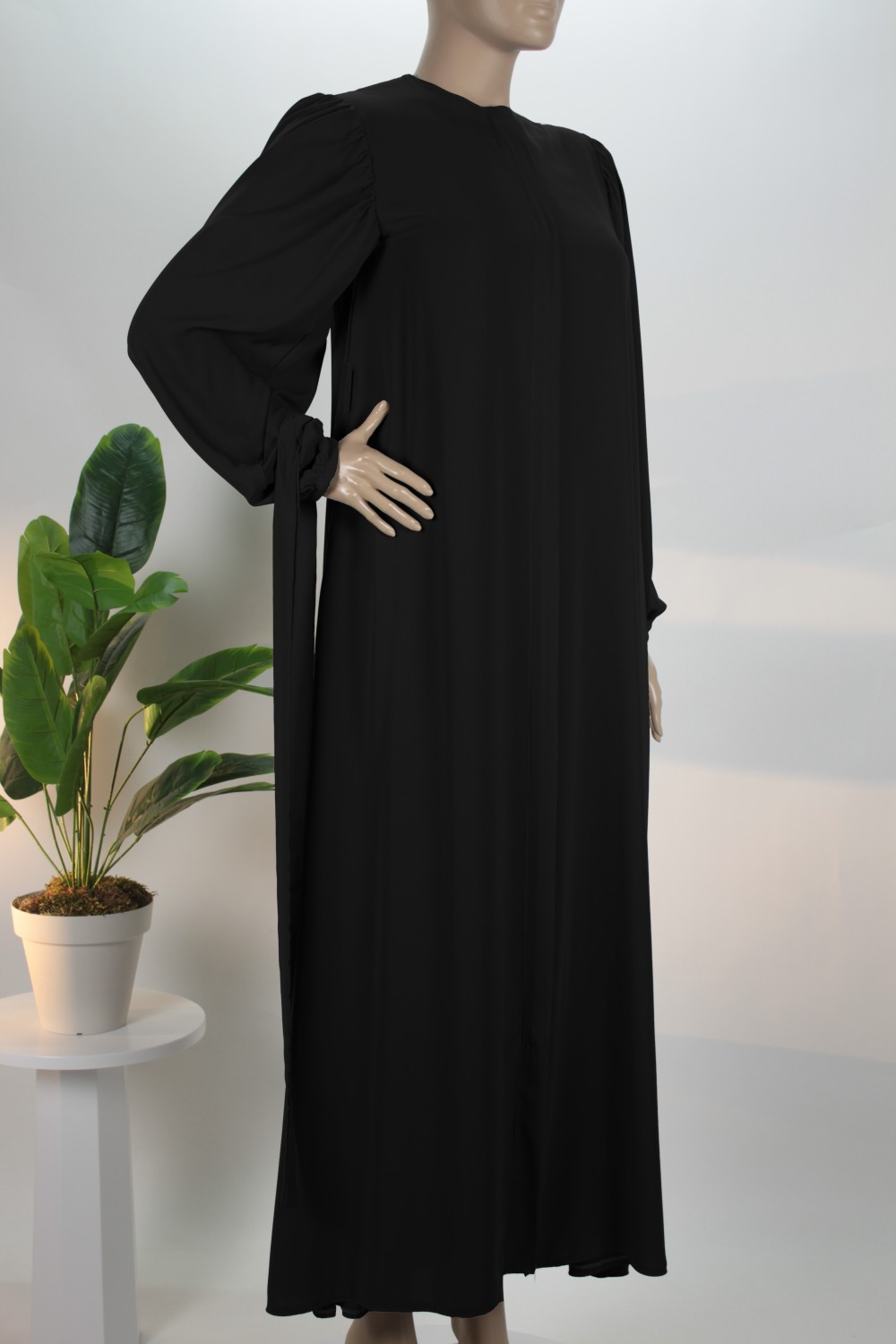 Siyah Balon Kol Gizli Fermuarlı Pat Kemerli Medine İpeği Ferace