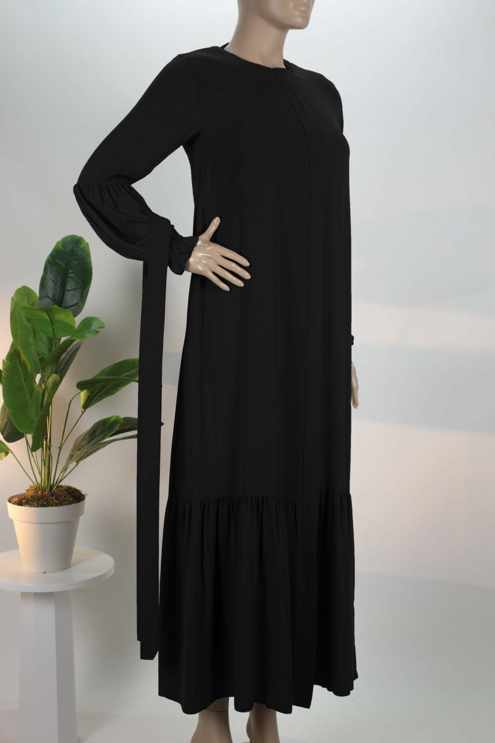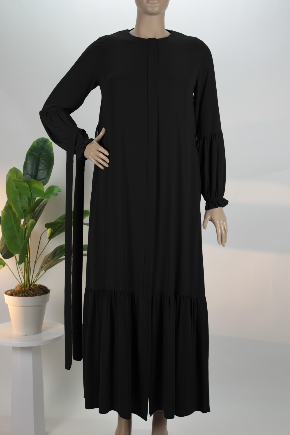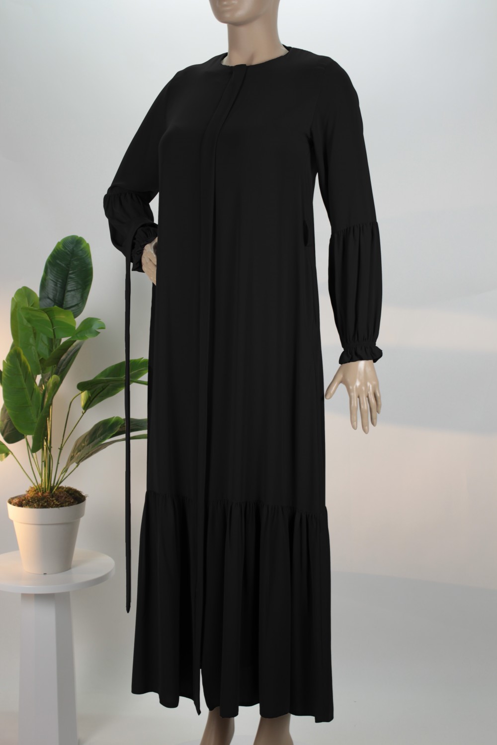 Siyah Eteği Büzgülü Kolu Pileli Pat Kemerli Medine İpeği Ferace