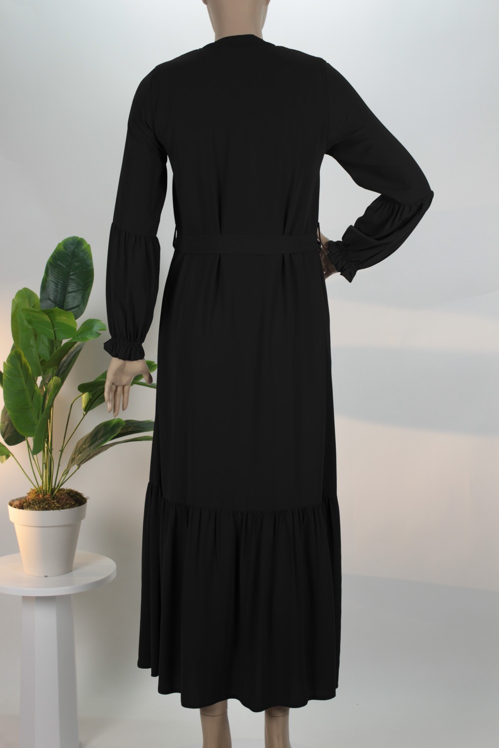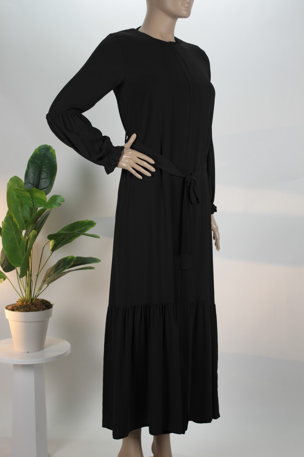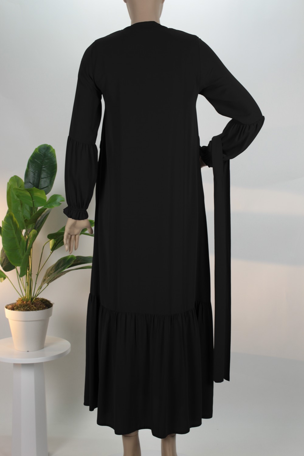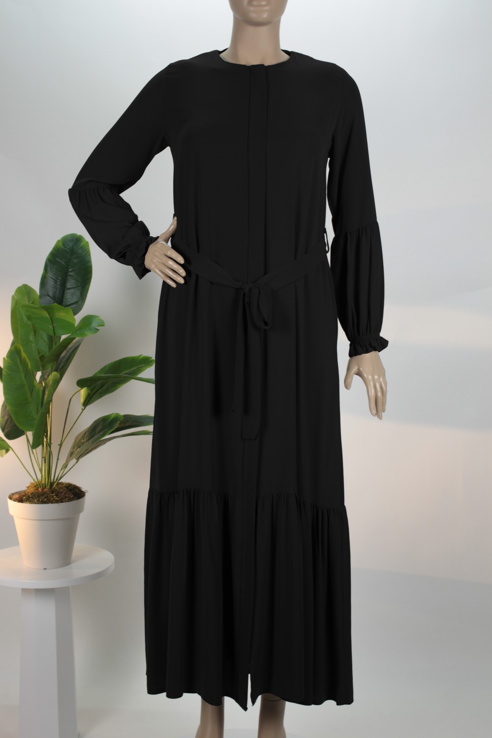 Siyah Eteği Büzgülü Kolu Pileli Pat Kemerli Medine İpeği Ferace