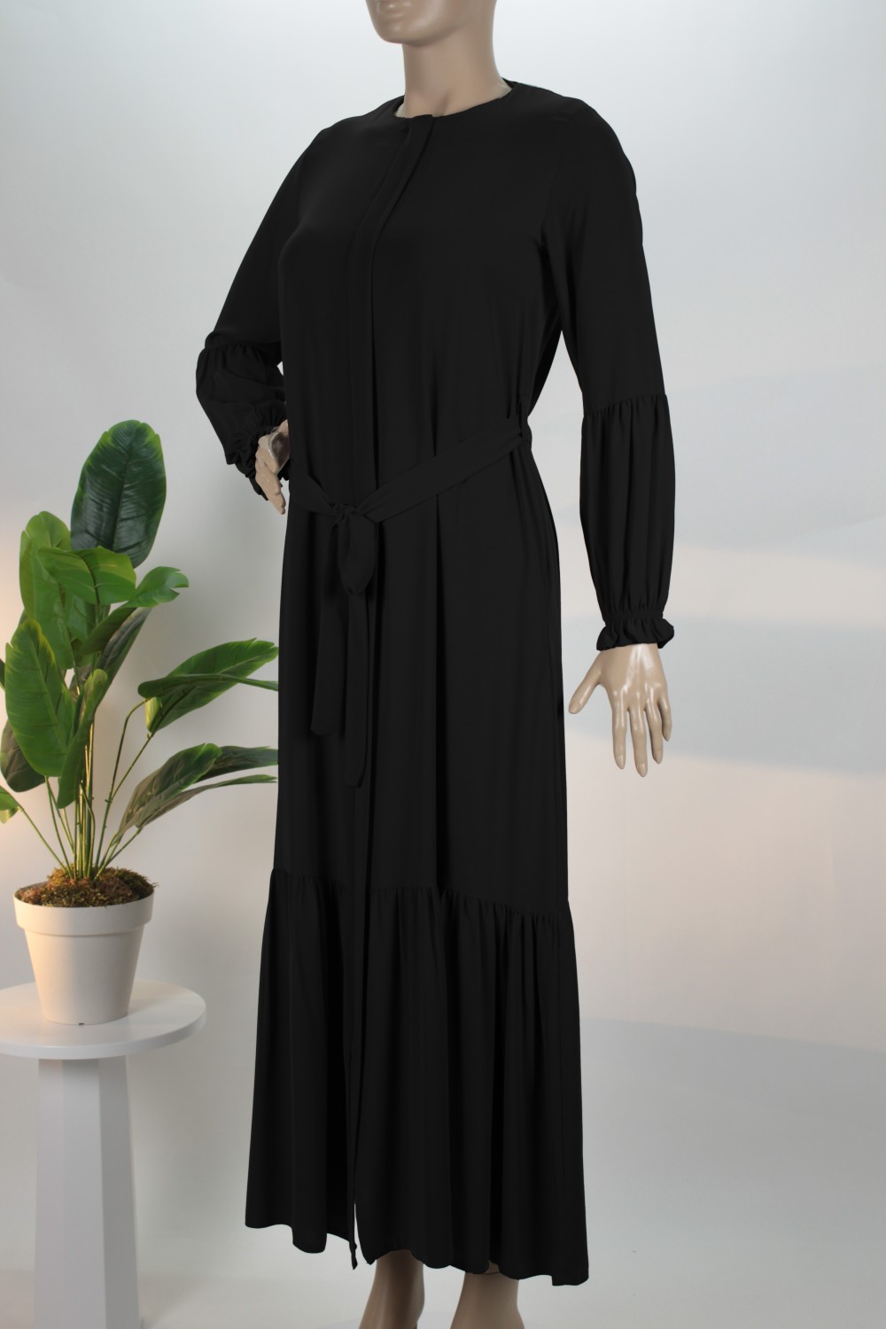 Küf Yeşili Eteği Büzgülü Kolu Pileli Pat Kemerli Medine İpeği Ferace Haki Eteği Büzgülü Kolu Pileli Pat Kemerli Medine İpeği Ferace Siyah Eteği Büzgülü Kolu Pileli Pat Kemerli Medine İpeği Ferace